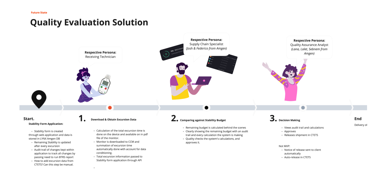 We delved into the operations of Carrier’s client, Amgen, to understand the complexities of temperature tracking. Through intensive workshops, interviews, and user testing with three Lynx customer organizations and 12 separate industry professionals, we developed and refined user personas, setting the foundation for our solution.