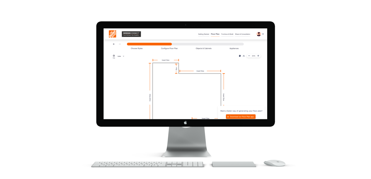 Home Depot tasked the team with reimagining the kitchen remodeling experience, aiming to inspire customer creativity, boost confidence in the remodeling process, and keep customers engaged throughout their journey.User interviews and research indicated a need for a simplified, user-friendly solution that could help customers visualize changes.